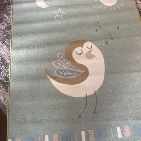 Siisti ja hyväkuntoinen matto, koko 90x130cm. Taustapuolella liukumista estävä pinta joten pysyy hyvin paikallaan.