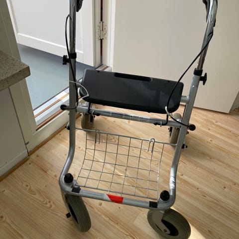 Rollaattorissa on istuin ja tarjotin, joka toimii myös säilytystilana. Sopii kävelyn tukemiseen ja lyhyiden matkojen kulkemiseen.Lähinnä sisäkäyttöön tarkoitettu.
