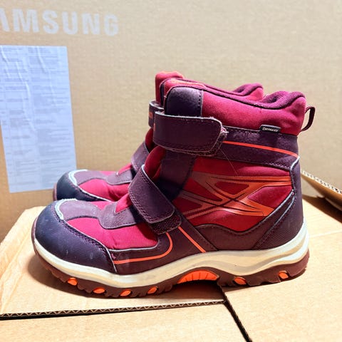 Pari talvea käytetyt, mutta edelleen toimivat Haltin talvikengät. Sisätilat nukkaiset. Tarrat pitävät, vedenpitävät.