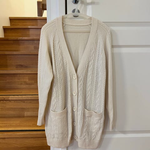 Ihana neuletakki vaikka joulujuhliin. Helmet koristaa virkattuja reunoja. Vartalonmyötäinen ja sopii hyvin mekon kanssa.