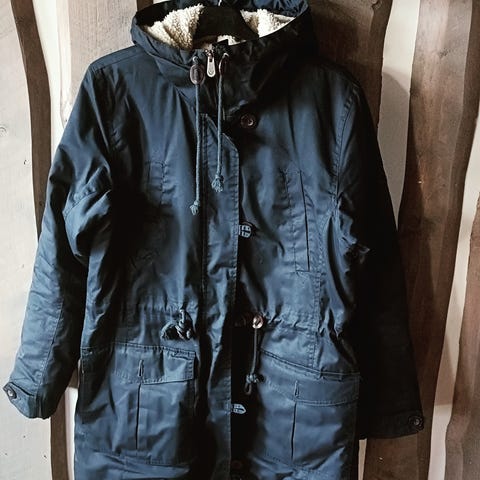 Kokoaan vastaava, muutaman kerran käytetty ihana muhkea ja lämmin talvitakki. Tämä on kätevämpi malli esim. autoa ajavalle, lämmittää silti alaselkää mutta ei ole tiellä liiaksi kuten pitkät toppatakit.