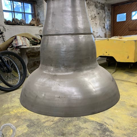 Teollinen seinävalaisin, valmistettu metallista, väriltään harmaa. Valaisin on varustettu kaarella olevalla kiinnitystangolla ja kiinnikkeillä seinälle asennusta varten. Soveltuu ulko- että sisätiloihin teolliseen tai rustiikkiseen sisustukseen.