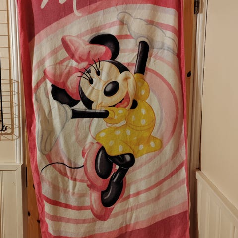 Erittäin hyväkuntoinen, lähes uudenveroinen retro Mikki ja Minni moottoripyörällä kylpypyyhe / rantapyyhe. Koko 140 x 70 cm. Toridiili nouto tai muu postitus onnistuu.