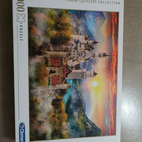 Clementoni Neuschwanstein-linna palapeli, jossa on 1500 palaa. Palapelin kuva esittää Neuschwansteinin linnaa lumisessa maisemassa auringonlaskun aikaan. Sopii palapelien harrastajille ja koko perheen ajanviettoon.