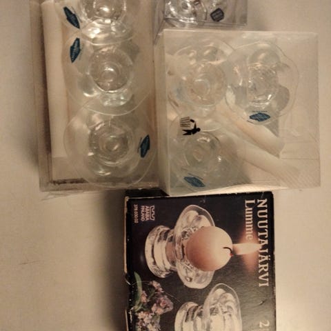 Nuutajärvi ja Arabia, lasiset 6kpl pieniä kynttilänjalkoja ja yksi isompi.