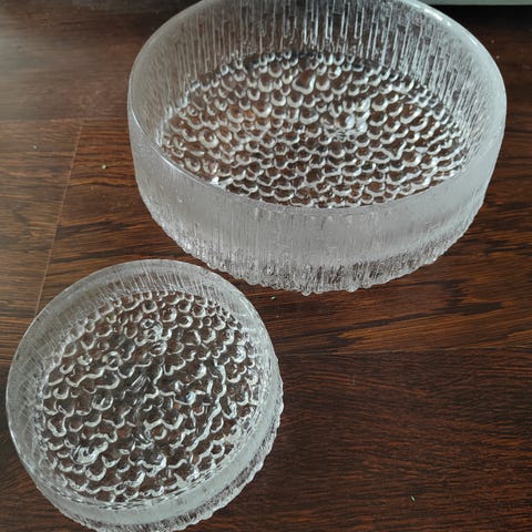 Myydään tarjoiluvati / tarjoilulautanen Iittala Ultima Thule lasihedelmineen 17kpl. Eli nyt myynnissä todella upea lasihedelmävati. Vati uudenveroisessa kunnossa. Hedelmät kaikki hyväkuntoisia. Muutamasta puuttuu lehti (niistä mainittu erikseen).