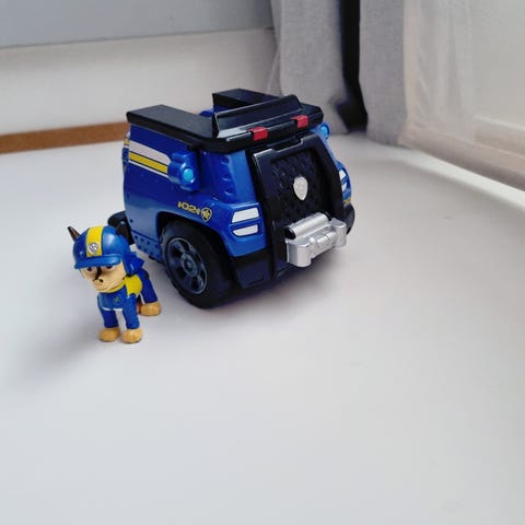 Ryhmä Hau Vainun auto ja Vainu. Vainu istuu (raajat ei liiku), pää pyörii. Auton saa muunnettua pienemmäksi painamalla kontin reunoja toisiaan vasten ja työntämällä sitä eteenpäin. Päällä käytön jälkiä, mutta yleisilme siisti.