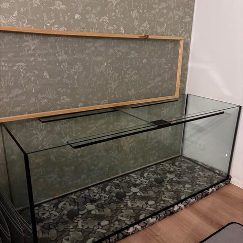 Myydään entinen akvaario, joka on ollut syyrialaisen hamsterin käytössä. Mukaan tulee tukeva verkkokansi (näkyy kuvassa 3). Halutessaan saa myös kuvissa näkyvän taustakuvan.
