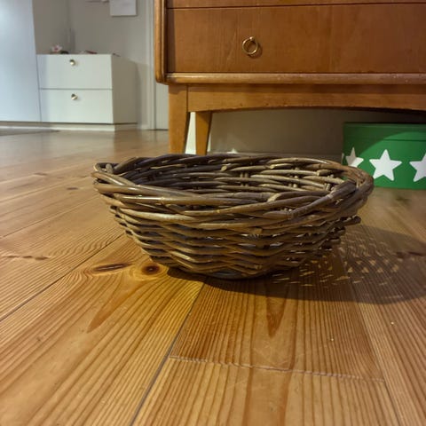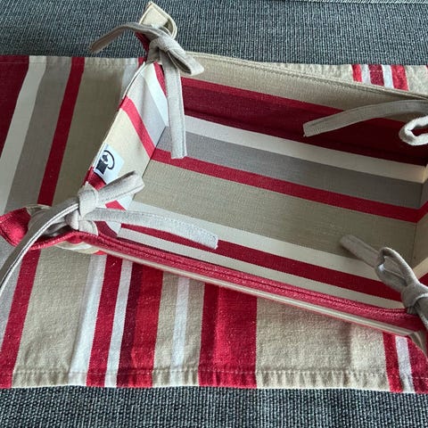 Puttipajan leipäkori, punainen väri, valmistettu kankaasta. Sopii leivän ja pienten leivonnaisten tarjoiluun tai säilytykseen keittiössä. 24. X 17 cm.