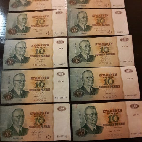 10 markan setelit vuodelta 1986