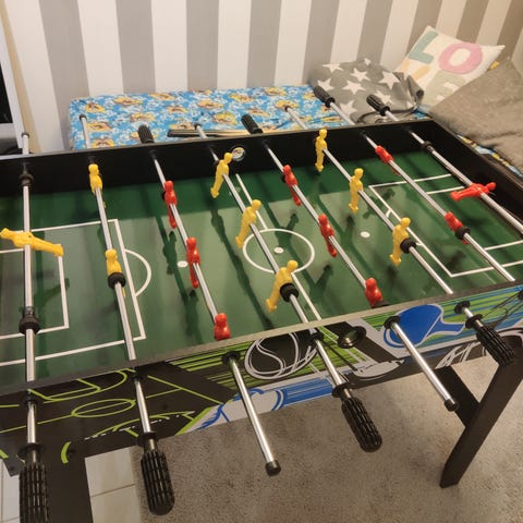 Pelipöytä erittäin hyvässä kunnossa.Mitat(pituus:104cm*leveys:58cm*korkeus:70cm)Neljä erilaista peliä: