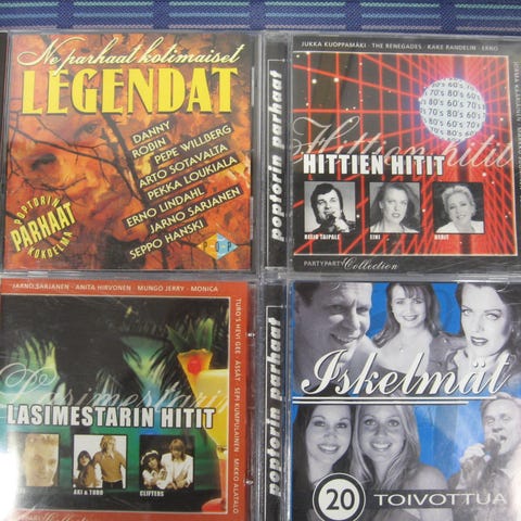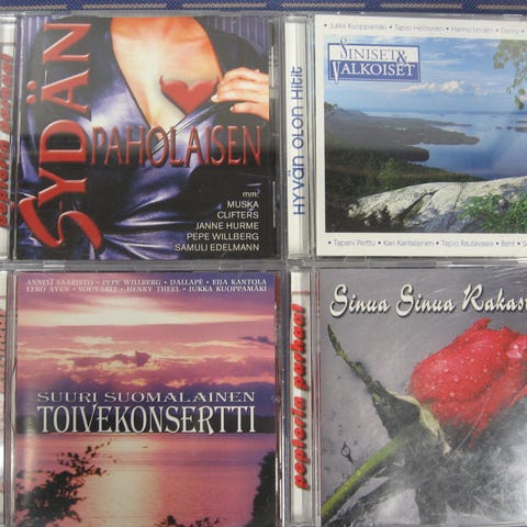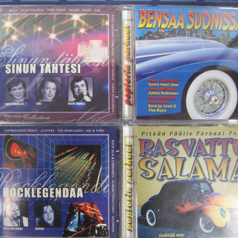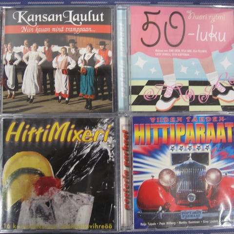 Myydään kokoelma cd-levyjä 3,00 euroa kappale. Kaikki cd:t kuunneltu ja todettu toimiviksi. Cd:ssä voi olla naarmuja & kansipapereissa jälkiä/omistuskirjoituksia, mutta cd-kotelot ovat ehjät. Postituskulut ostajalle ja noutokin sovittavissa.