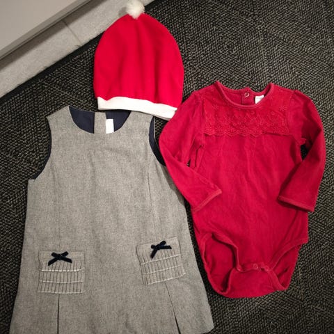 Laput irroitettu ja pesty, mutta ei kertaakaan käytetty tyttöjen joulumekko. Mukaan saa halutessaan uuden tonttulakin.