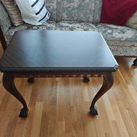 Chippendale-tyylinen pyöreä pöytä, jossa irrallinen lasikansi