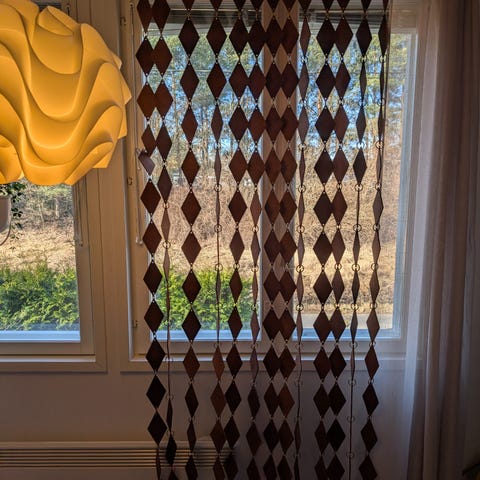 aarikka, tilanjakaja, oviverho, puinen