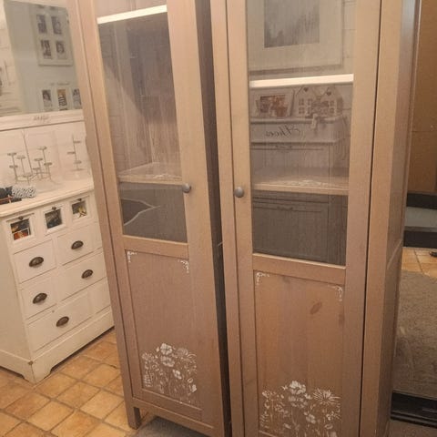 Helpoo kiinnittää seinään puutuki 2 ruuvilla ja nostaa vitriini siihen päälle