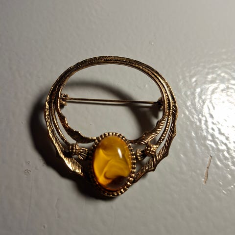 Vanha rintaneula, kuparia ja meripihkaa, ajan patinaa löytyy. Vain nouto tai postitus, postikulut 2,75e ostajalle. Maksutapa: käteinen, tilisiirto, mobile pay