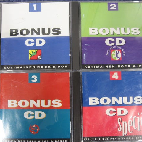 Myydään kotimaisia kokoelma cd-levyjä 3,00 euroa kappale. Kaikki cd:t kuunneltu ja todettu toimiviksi. Cd:ssä voi olla naarmuja & kansipapereissa jälkiä/omistuskirjoituksia, mutta cd-kotelot ovat ehjät. Postituskulut ostajalle ja noutokin sovittavissa.