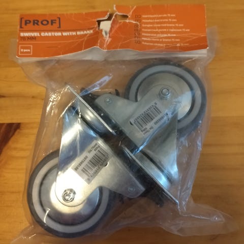 Myynnissä tarpeettomaksi jääneet pakkauksessaan olevat 2kpl kääntöpyörä PROF 75mm. Kissa saattanut pureskella pakkausta mutta pyörät koskemattomat. Savuton ja eläintalous (=löytyy mahdollisesti eläimen karvoja). MMM.