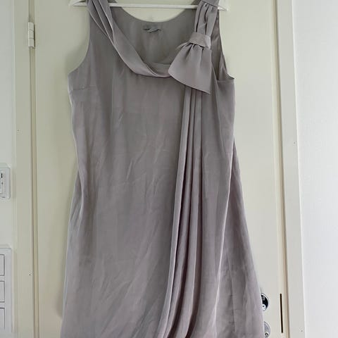 Sini-kermamvalkoinen mekko, koko 46 kai-kai 55cm, vyötärö 2x49cm, olka-helma 91cm