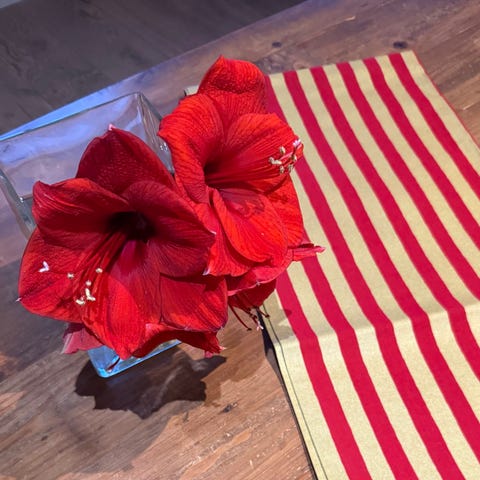 Jouluverhot 7 kpl puna-kulta raita, ylhäällä tanko kuja 4,5cm. Koko 164cm * 136 cm.
