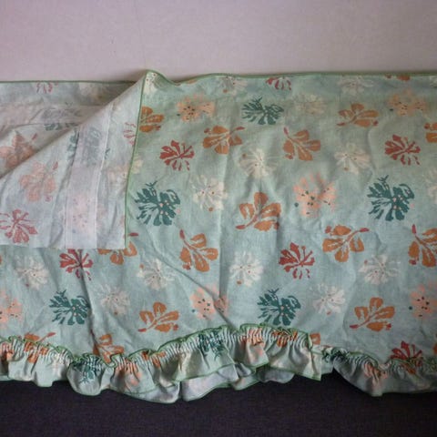 2kpl Vihreä sävyinen kappaverho, verhossa keskellä sauma. Tankokuja. Pituus 2.80, korkeus 48cm.
