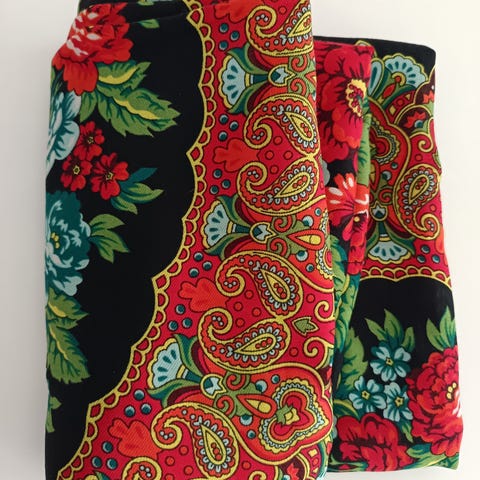 Iso huivi, pituus 205 cm, leveys 74 cm.