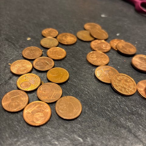 21 kpl yhden ja kahden sentin kolikoita. Maita: Kreikka, Alankomaat, Italia, Espanja, Belgia, Viro, Itävalta, Saksa, Irlanti. Vuosilta 2000-2016.
