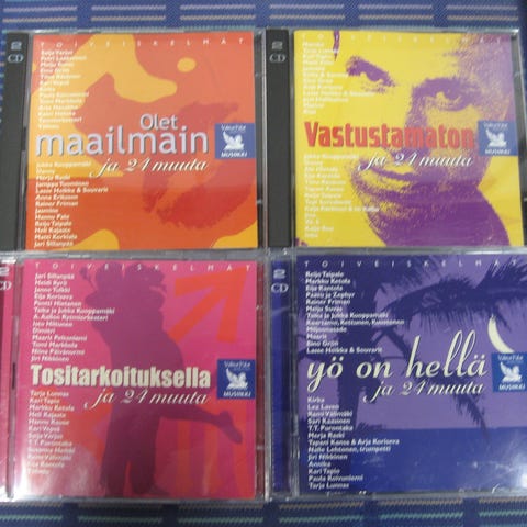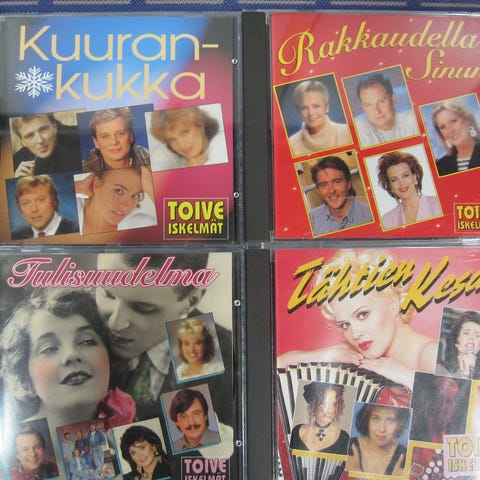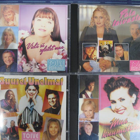 Myydään Toiveiskelmä kokoelma cd-levyjä 3,00 euroa kappale. Kaikki cd:t kuunneltu ja todettu toimiviksi. Cd:ssä voi olla naarmuja & kansipapereissa jälkiä/omistuskirjoituksia, mutta cd-kotelot ovat ehjät. Postituskulut ostajalle ja noutokin sovittavissa.
