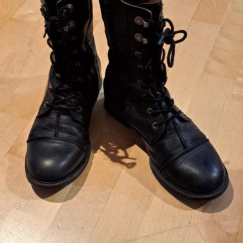 Hyväkuntoiset ja laadukkaat nahkanilkkurit. Käytetty syksyllä suutarilla kausihuollossa ja lisätty samalla Vibram pohja joka parantaa lämmöneristystä ja pitää hyvin pystyssä vähän liukkaammillakin keleillä. Kengät ostettu tenpointsfootwear.com ovh:lla 189€ ja suutarikustannukset 80€.