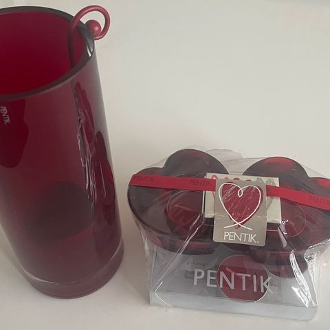 Myydään kuvan käytetyt Pentik tuikku kynttilänjalat. Punaiset ja kirkas.