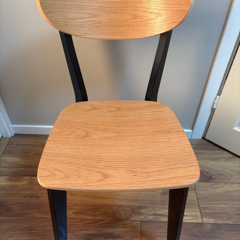 Väri öljytty tammi ja istuinosa mustaa tekonahkaa.
