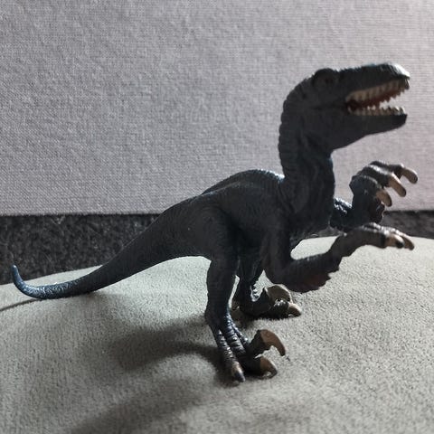 Myydään hyvässä kunnossa oleva Schleichin Velociraptor lelufiguuri / keräilyfiguuri. Tältä saa suun auki ja kiinni. Pohjassa merkintä Schleich Germany.