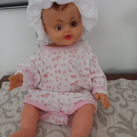 Vauvalle tai isommallekin tarkoitettu taidokkaasti neulottu nukke