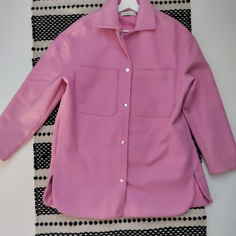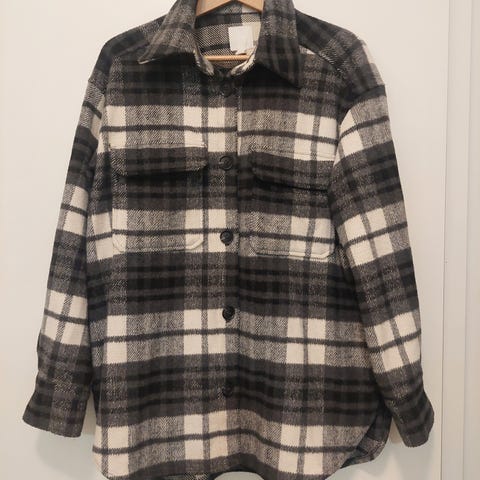 Ihana paitatakki taskuilla. Ei kutita, mukavan lämmin, kangas aika paksua. Oversize eli menee myös L kokoiselle.