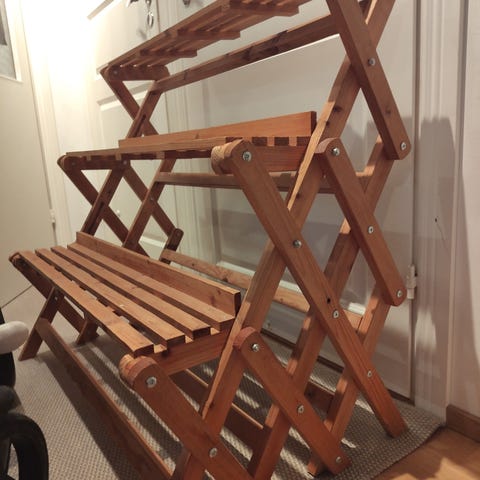 Myydään hyväkuntoinen avohylly / kukkapöytä. Materiaali massiivipuuta ja oksatonta vaneria.
