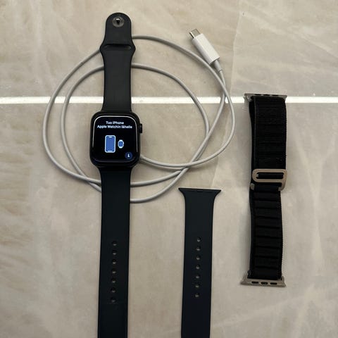 Mukaan 5 ranneketta. Mm. Applen alkuperäinen metalliranneke(99€)