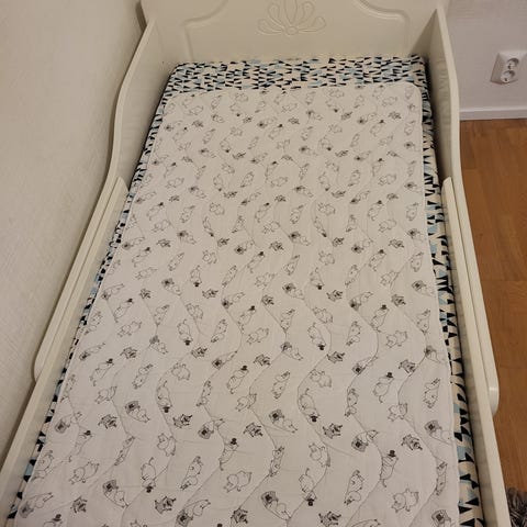 80x200 puurunkoinen sänky (sis säleikkö). Istumakorkeus n.45 cm ja sängyn päädyn korkeus 75cm maasta. Purettu osiin.