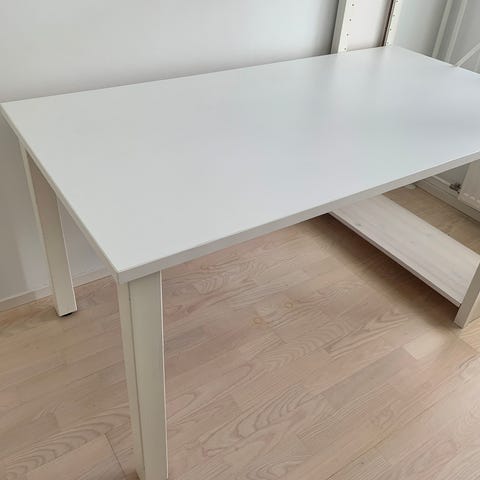 Kertaalleen hiotut ja kalkkimaalatut Lundian osat nyt edullisesti eteenpäin. Kokonaisuutta käytetty lastenhuoneessa työpöytänä. Pinta ottanut osumaa muutossa, mutta hiomalla tai käsittelemällä uudestaan Rust-Oleumin mustalla kalkkimaalilla saa tästä oikein siistin edelleen.