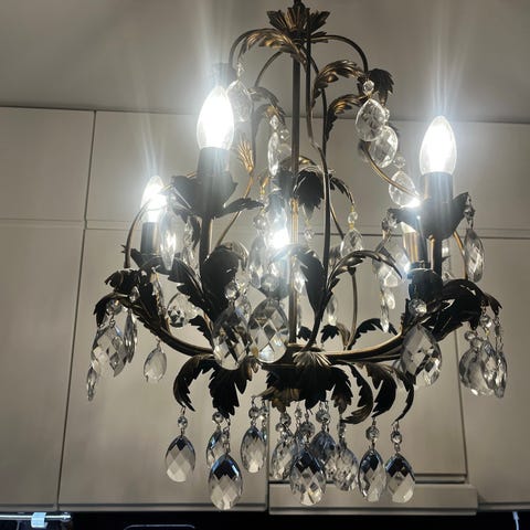 Skannosta ostettu upea ruotsalaisen L. Ståhlgrenin suunnittelema kristallikruunu korjaustaitoiselle henkilölle todella pieneen hintaan! Koko: korkeus 60cm ja halkaisija leveimmästä kohdasta 45cm.