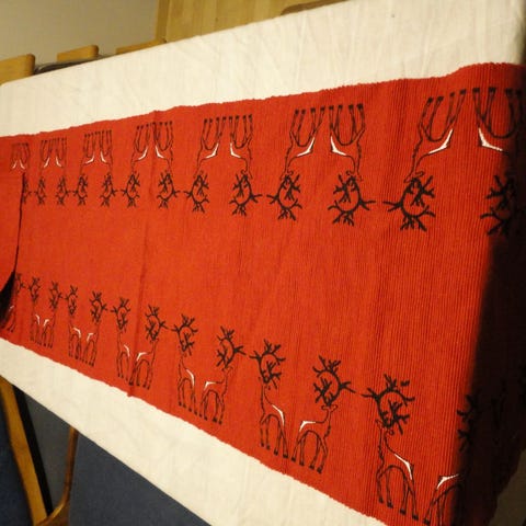 Kiva joululiina, kirjotut tontut, 39× 1.23, puhdas ja ehjä.