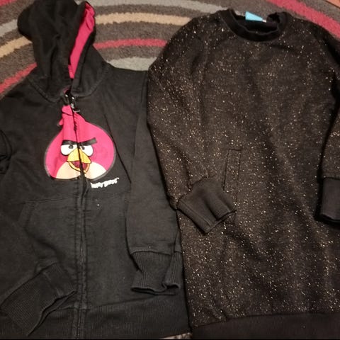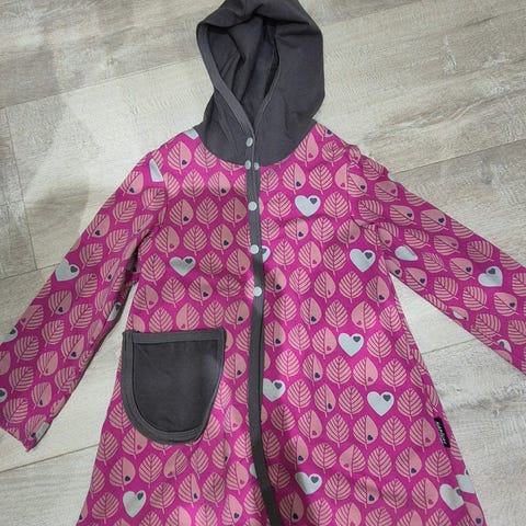 Myydään kuvan käytetty ehjä hupputunika. Koko noin 116. Trikookankaasta itse tehty.