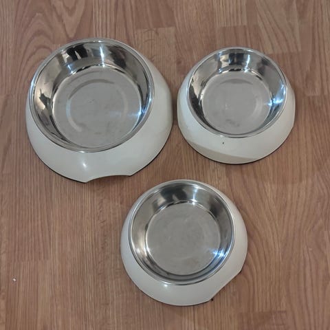 Melamiinikuppi S ja M Little&Bigger, Musta ruoka- tai vesikuppi koiralle tai kissalle. Koko S, löytyy 3kpl. Hinta 4 euroa/kpl tai kaikki 3kpl yhteensä 10 euroa.