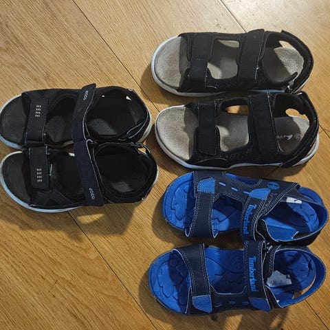 Kuvan lasten kengät koossa 33-35. Talvikenkiä kaksi paria, kahdet tennarit, yhden loskarit ja kesä kesäkengät sekä tarralliset välikausikengät. Hinta koko setistä.