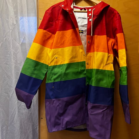Myydään käytetty, mutta hyväkuntoinen Stutterheim -merkkinen beige naisten sadetakki.