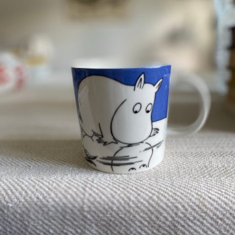 Muumimuki Muumipeikko Jäällä(1999-2012)0,3dl-Tarra-kruunu leima käyttämätön ja virheetön säilytetty laatikossa 50€+posti/nouto