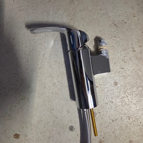 Grohe Eurosmart Cosmopolitan hana, kromattu viimeistely. Sopii hyvin jos pesukone altaan vieressä.