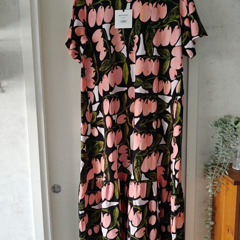Kapeissa hihoissa normaali istuvuus ja pudotettu olkasauma. Muuten oversize malli, jossa helman pituus n. polven alapuolelle/pohkeen kohdalle. Valmistettu pehmeästä luomupuuvilla collegeneuloksesta.