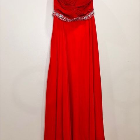 Siististi laskeutuva edestä lyhyempi, takaa täysimittainen. Tukevaa pitsiä yläosassa. Koko M, oma pituus 169cm ja käytin mekon kanssa sekä n. 5cm korkoja että tennareita (kuvissa). Käytetty kerran häissä 2018, jonka jälkeen pesetetty pesulassa. En löydä vikoja.