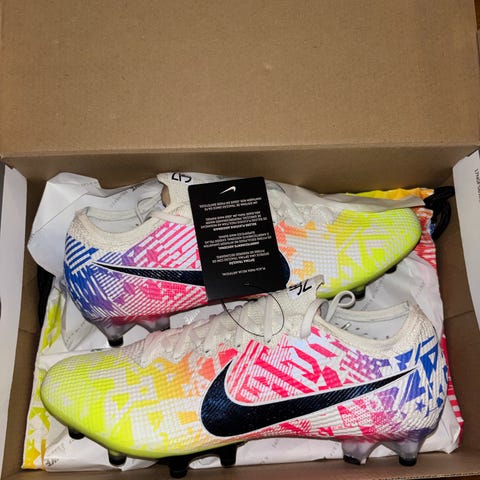 Myyn nämä, koska ovat liian pienet minulle. Niitä on käytetty muutaman kerran ja sen takia niissä on pari osumakohtaa jalkapallon jäljiltä. Ne näkyvät kuvissa.